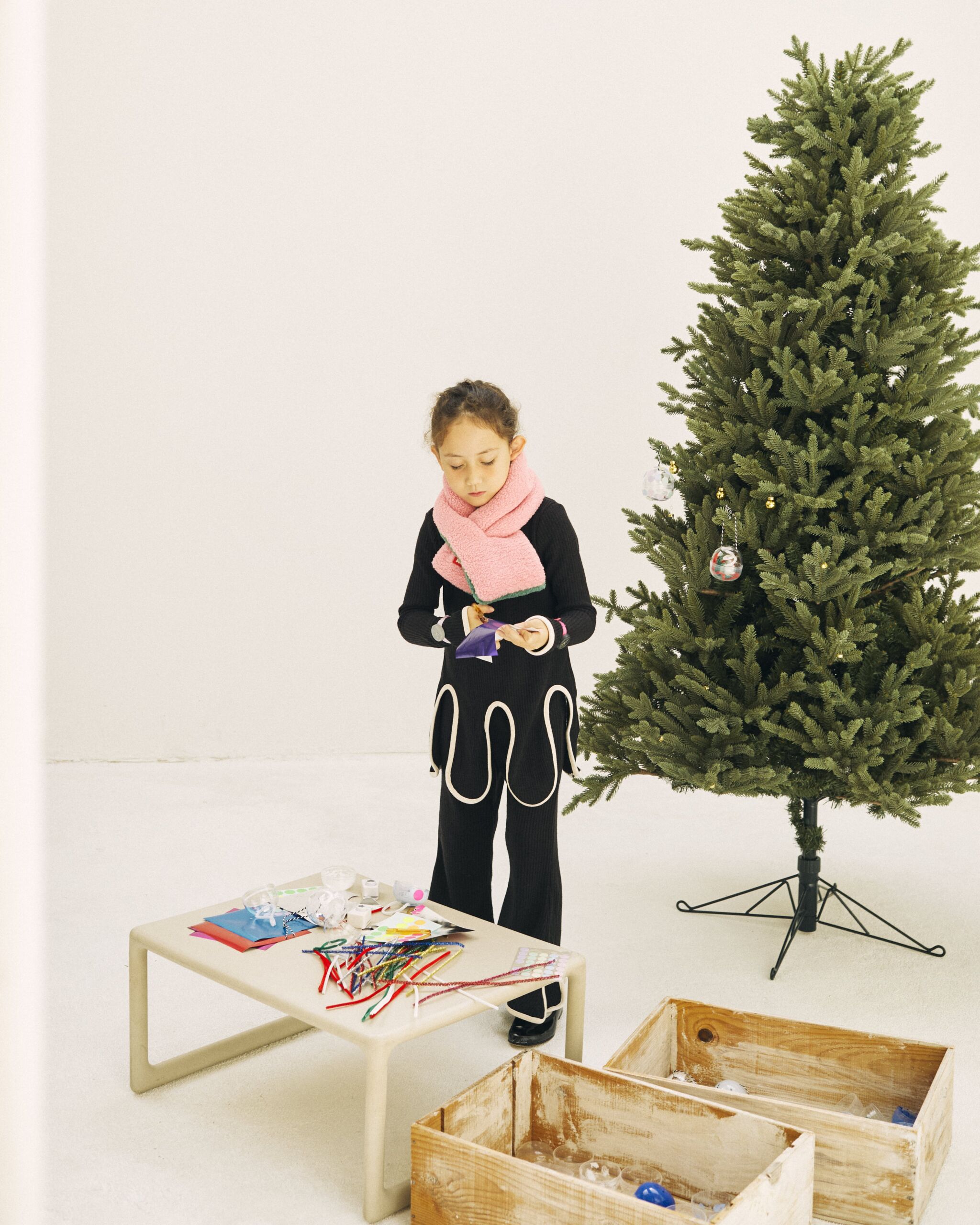 トップス ¥13,970/ZoZIO、パンツ ¥14,960/ZoZIO、ストラップシューズ ¥14,300〜/SHIPS(シップス インフォメーションセンター)、マフラー ¥8,030/BOBO CHOSES(BOBO CHOSES JAPAN)