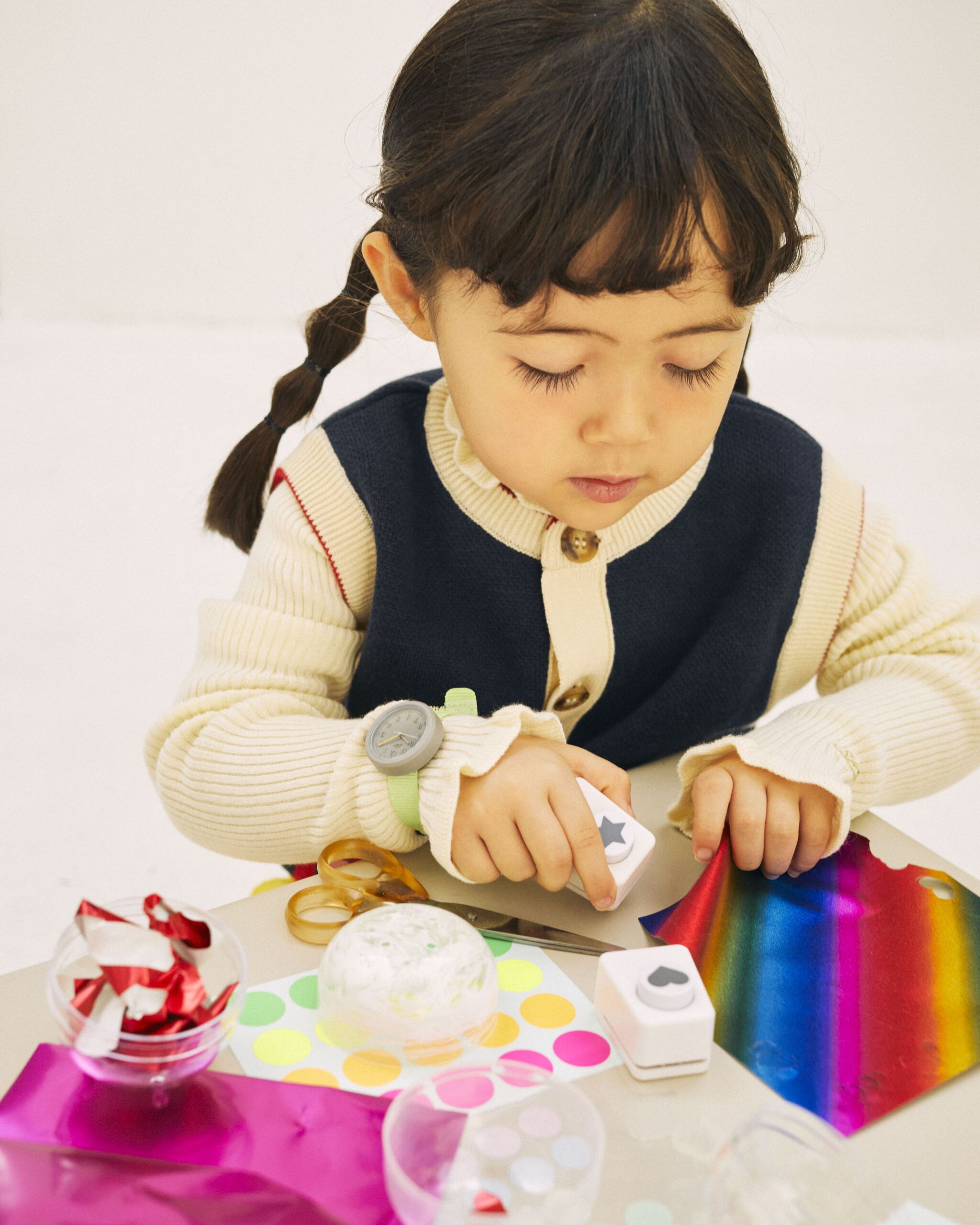 カラフルなベルトは、子どもたちの表情や動きにぴったりフィット。